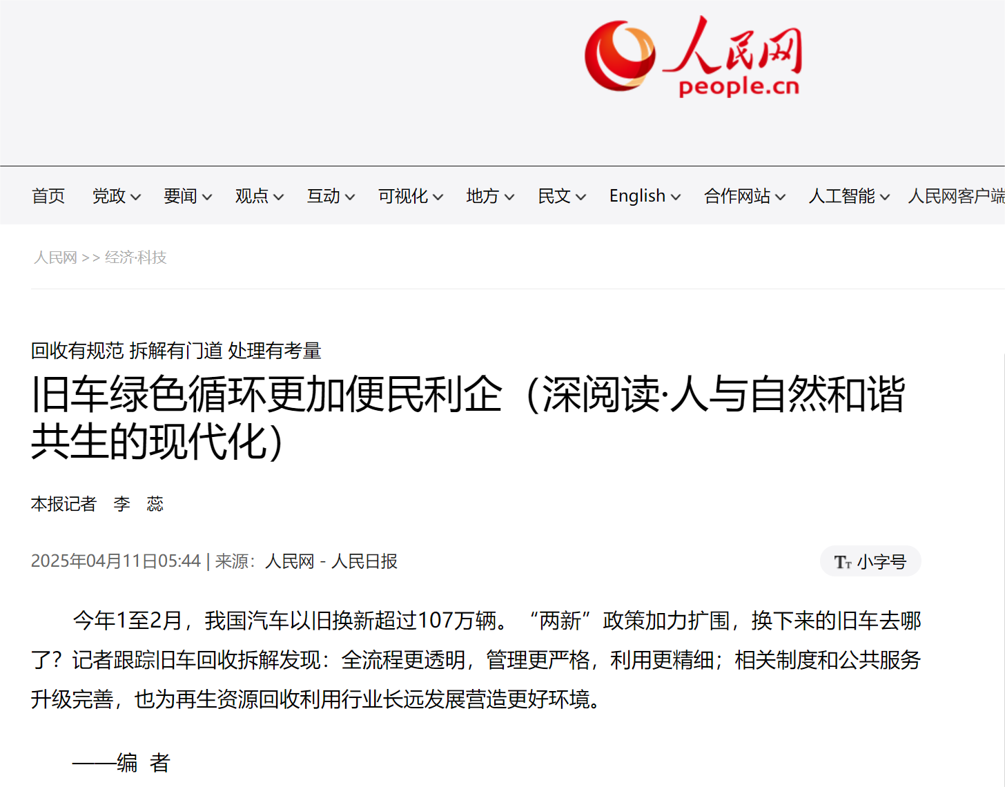報廢機動車的回收、拆解、分揀加工